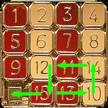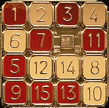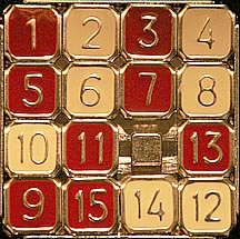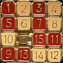 There's one final trick that may save you a little time on some puzzles. Before plowing the 1 through the center of the puzzle to get it in the upper left hand corner, take a look at how the tiles lay. In the case below the 15 and 1 are in opposite corners. Rotating all the outside tiles around does two things at once: it gets the 1 into its corner and moves the 15 down close to where it needs to be.