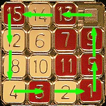 Then the 12, 11 and 15 are moved over and down around the corner. Note that the 11 and 12 are still in their proper order.