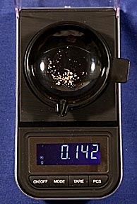 And that's about it! I transfer the gold from the snuffer bottle to the bowl into which the pieces picked up with tweezers had been placed, pour off any water and let it dry out. Any black sand that might have been sucked up with it can then be easily removed. I add this to the pickers from the classification, weigh it, take a picture of it and add it to my gold horde in one of the glass vials mentioned in the Equipment List. Then I update the page in my gold notebook recording the amount of gold on that sample's page, figure out its value based of that day's gold price and finish the page off with a brief description of how easy the pay dirt was to work with.