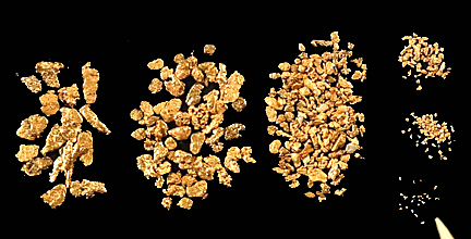 the left: +20 mesh gold, +30s, +50s, +70s, +100s below that and -100