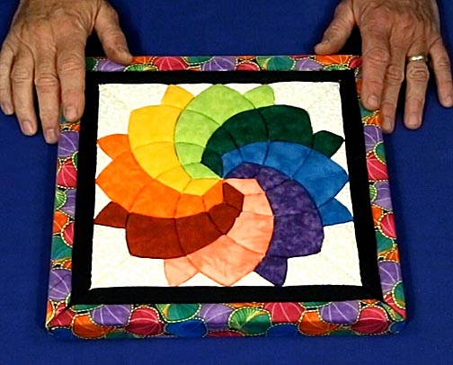 The last step was to use a small Exacto knife to cut down one half inch along all the lines. The diagonal lines in each corner were cut all the way down to the foam board base. And that's it! Assembling the quilt is the same as in a premade kit. Here's how it turned out: