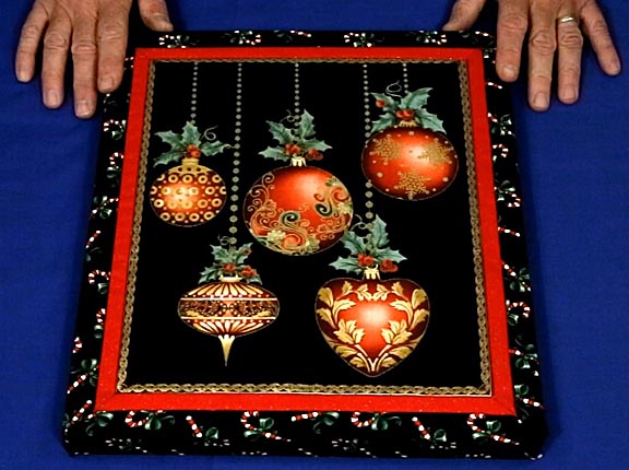 Because the foam used is much softer than those used in the professionally made no-sew quilt boards, the corners are a little harder to tuck in. We recommend not trimming the corner material at all to have as much material to work with as possible. The next time we make one of these we will glue one inch wide strips of poster board to the sides of the corners to eliminate this problem.