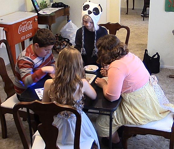 The bag came with a guide showing what each type of gem looked like. They had a lot of fun passing it around and asking their neighbors' opinion on the identity of their latest treasure.