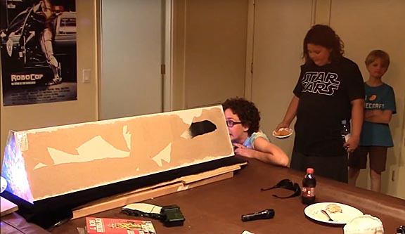 The typing paper can be illuminated by any number of moving-light projectors to create stunning images that undulate with beautiful patterns. Remove the paper and have children go on a scavenger hunt to find objects to hold up to one end to create fantastic images at the other. One thing I found they all enjoyed was looking into the kaleidoscope to use their own faces to create kaleidoscopic images.