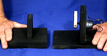 Make a second base for the wave motion cell to pivot on. Its height should be the same as the top of the offset disk when it's positioned sideways. This ensures that the cell rocks up and down by the same amount at both ends. Add rubber friction pads to the bottoms of both drive components so they stay in place.