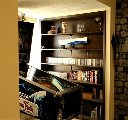 Large openings such as the one above create another problem. If someone walks past them quickly, air currents can cause to wall covering to ripple. The bed sheet backing reduces this significantly but an even better solution is to mount a 2 x 2 inch wood beam halfway up across the opening and then stapling the cover to it.