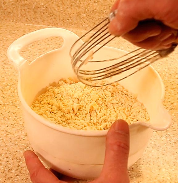 While I like flaky crusts, I prefer something a little finer and more delicate. For that I start with 450 grams of all purpose flour, 1/2 teaspoon of salt, 5 tablespoons of sugar and 240 grams of butter flavored Crisco. Blend these together with a pastry cutter until it's reduced to bean sized clumps.