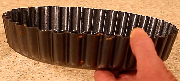 Because the tart pan rests on its lower outer rim, heat quickly conducts into the corners and can over bake the bottom edge of the dough. To prevent this, I recommend supporting the tart pan on the bottom of the oven with three small pieces of fireproof tile.