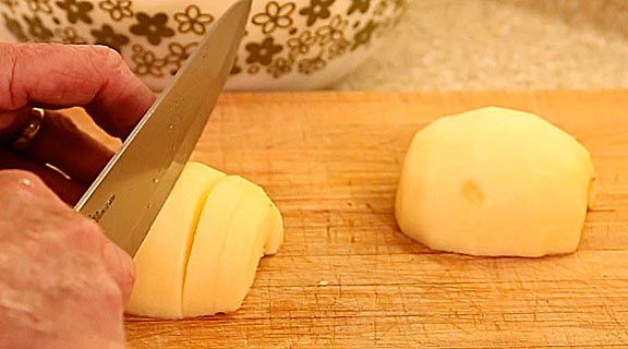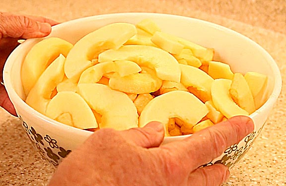 Peel and core five pounds of apples, then cut them into 1/4-inch thick slices. You should end up with four pounds of slices. Taste one piece from each apple to form an opinion on the average sweet vs acid balance. If they are very sweet then you may want to reduce the amount of sugar 20 to 40 grams. If overly tart, consider increasing the sugar by the same about.