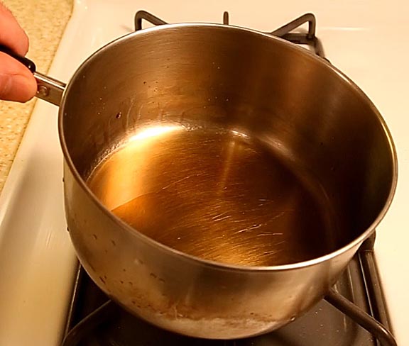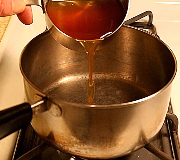 Four pounds of apple slices should yield one cup of richly flavored apple juice. Pour this into a heavy bottomed pan and simmer until it's reduced to a thick syrup. Once it starts to thicken it can burn very quickly so please se sure to watch it carefully.