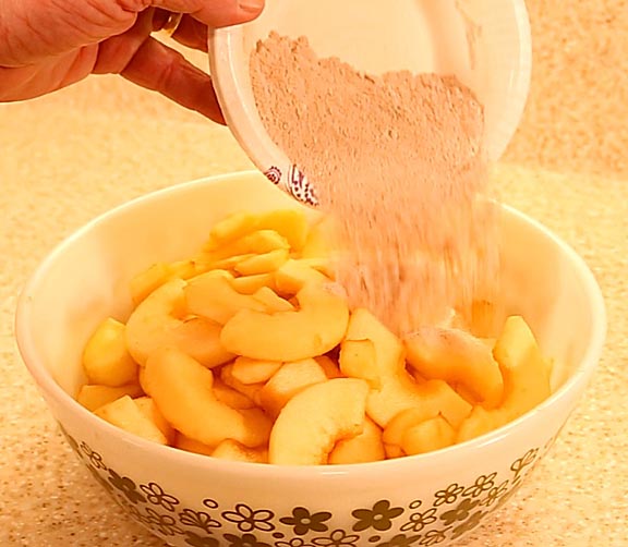 Sprinkle the spice mixture over the apples and toss to coat each piece evenly.
