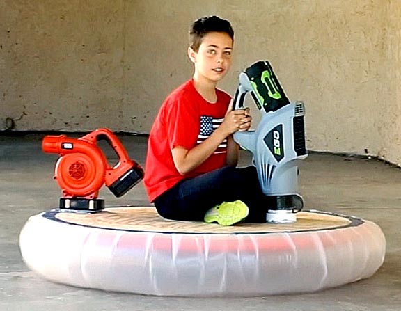 A million years or so ago, when I was as young as my grandson, James, in the image above, I dreamed of building a hovercraft, though they were more commonly called hover cars back then. The attraction was that they came as close to a flying saucer as anything you could get. I never made one. But now with six grandchildren tugging on my pant legs asking for something new to do I figured the time was ripe to satisfy this long forgotten desire.