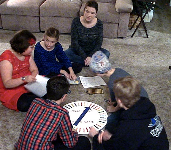 This was taken on Christmas day shortly after the children had opened all their presents. What you can't see is that just off frame all around them their gifts are piled high... and being completely ignored because they were having so much fun playing the Jelly Belly Name Game.