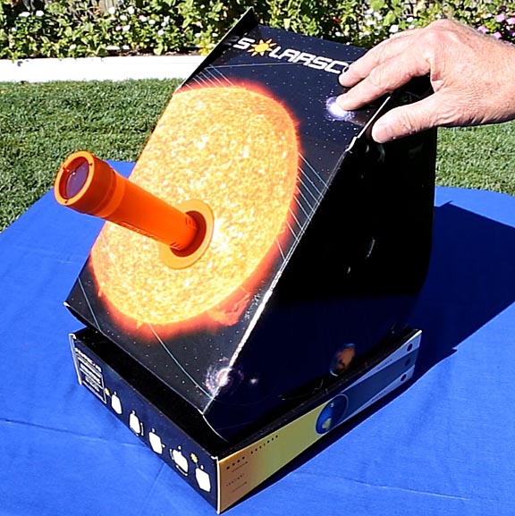 I found having to look in the direction of the sun to view the image to be a problem. Unless you push your face almost into the scope's body, glare from the sun is uncomfortable. Where small children are present, there is also the danger that they might not resist the urge to look up over the edge of the Solarscope directly at the sun.
