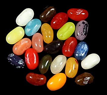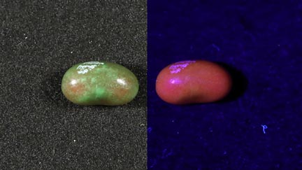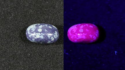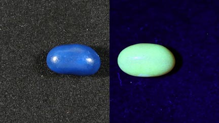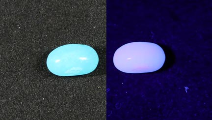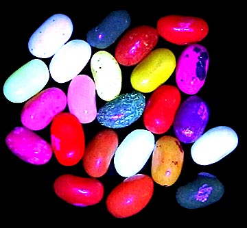 Jelly Belly jelly beans under normal light ...................... and the same under ultraviolet light