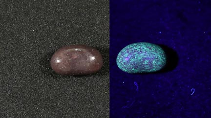 In all of the following pictures, the image on the left is in normal light while the one on the right is under ultraviolet or UV light: