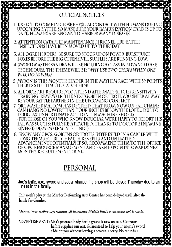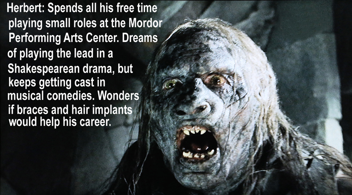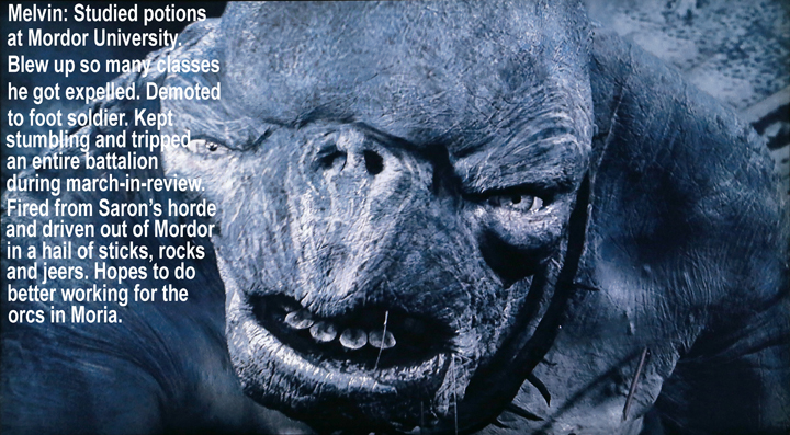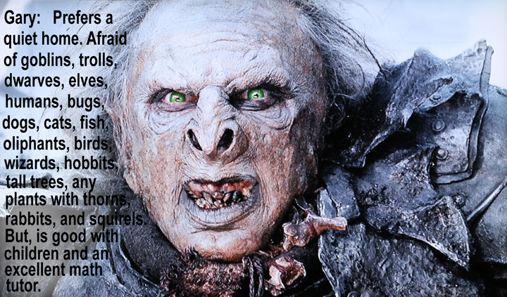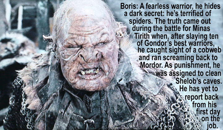 I recently threw a Lord of the Rings birthday party for my grandson Daniel. One of the rooms was decorated for orcs with posters featuring characters from the movies.