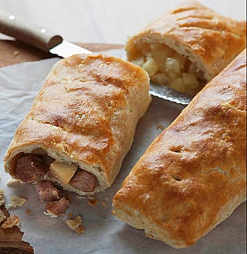 The sweet end was marked with several cuts in the dough before baking. It was actually used as an all-in-one meal for estate staff working long days in the field.