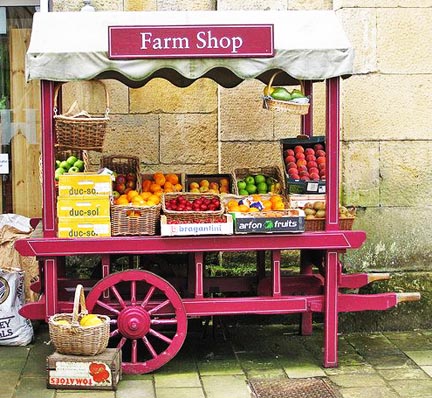 1. Richard got his start in the grocery business selling fruit out of a barrow. While a strict translation leads one to think a British barrow equates to an American wheel barrel, the two are quite different. A British barrow is more like a waist-high table with two legs having large diameter wheels so it can be moved. Many feature elaborate painted designs and come with protective awnings.