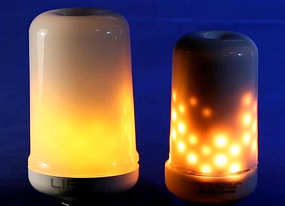 In the image above, the bulb on the left is the Lightone Flame Effect bulb while the one on the right is an Abedoe Fire Effect bulb.