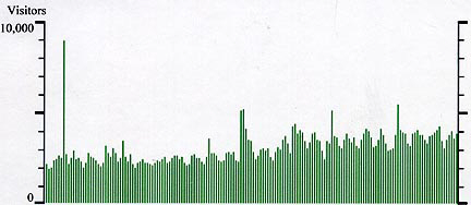 A bar chart of the daily number of visitors to the site shows several interesting patterns.