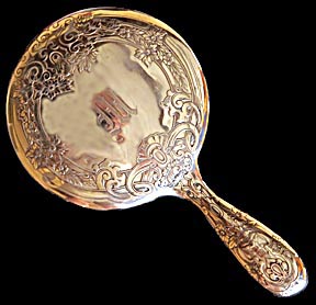 ...turned out to be quite common. The appraiser said they get three to five every Antiques Roadshow. The inlays were ox bone, not ivory and the table had a retail value of only $300.00. The other items we brought were a 1908 sterling silver mirror worth $200.00: