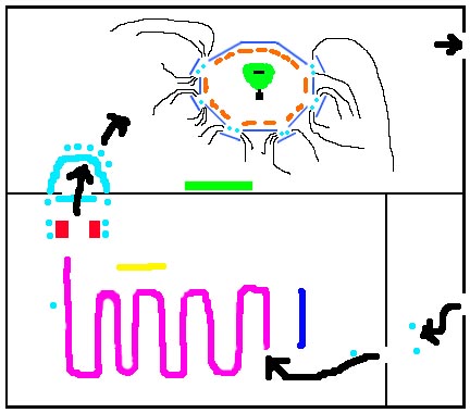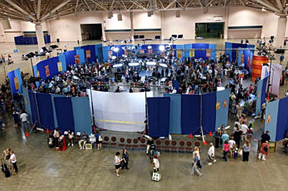 After getting your item tickets you are directed through another passageway into a second hall as large as the first. In the center of the hall was a circle of 12-foot tall blue canvas panels. Inside this circle were the actual appraisers and the area where special appraisals were filmed. Let's take a second look at the overhead sketch.