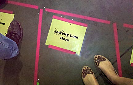 Pink tape outlined the waiting lines to see appraisers. They were barely shoulder width apart.