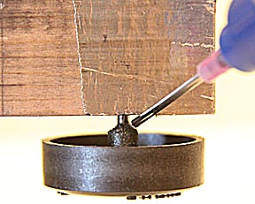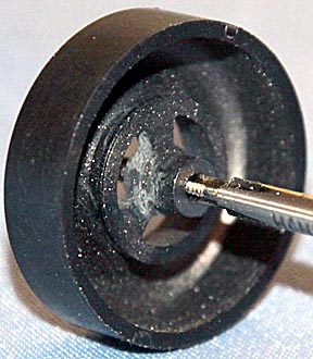 1. With a wheel down to expose the inside section of axle, I build up a fillet of graphite all the way around the inner wheel hub.