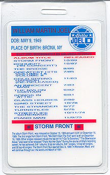 In 2006, my son-in-law Thomas Allison received a gift of an All Access pass to Billy Joel's June 22 & 23, 1990 Storm Front tour concert at Yankee stadium.