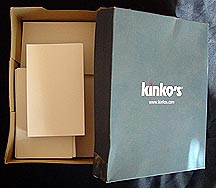 The first printing step is to get the correct sized paper: 4 & 1/8 wide by 6 & 3/4 inches tall is standard. I discovered that most large stationary/copier centers like Kinkos have a paper-cutting service. For a modest fee they'll cut a ream of paper to any size you want. Two thousand sheets of paperback-sized paper cost me $20.00. Ask for the lightest-weight paper available. If heavy paper is used, the pages won't have enough flexibility and the finished book will feel stiff and be hard to open. At Kinko's, where I had mine done, they even up it in a nice storage box. There is one caution: they'll make two cuts from one ream of paper and sometimes the second cut will be a small fraction of an inch different than the first. When you go to print your novel, be sure to stack the paper on edge to see that all of the pages are the same size.