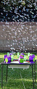 I enjoy setting up a bubble machine in the back yard and letting the bubbles drift all over the neighborhood. They never fail to make children and adults alike smile. Here are the results of a few tests on bubble mixtures I've tried, comments on bubble machines, and links to other, more complete, bubble sites. All of my comments pertain to lightweight bubbles intended to float on the wind. Heavy, durable bubbles for fixed displays are not addressed here.