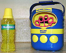 Worthy of mention is the Ultimate Bubble Toy by Gazillion Bubbles, also available at Rite Aid stores in March of 2006. For $10 you get a large bubble wand, a pan to hold bubble solution, a large bottle of top quality bubble juice, and a 30-minute DVD showing bubble artist Fan Yang doing all sorts of unbelievable bubble tricks. Even if you don't use the bubble kit the DVD is worth the purchase price.
