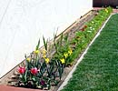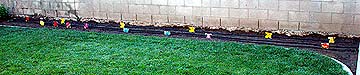 On September 4, 2004, I planted 80 choice ranunculus tubers in the south-facing bed in the hopes of seeing if the warmth from the house and the extra light reflected off the wall induces the tubers to bloom by Christmas. I also planted 40 inexpensive ranunculus tubers from Wal-Mart.