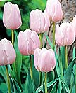They are very attractive up close, but the pink is so faint that in bright sun or standing more than ten feet away the color seems to fade. I will say this for them, they look more like the picture on the package than any other tulip so far. Considering that they were planted against the south wall where everything else bloomed early relative to the main bed and they are just starting to flower, it's safe to assume that the Esther yulips are a very late blooming variety.