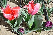While I was in the grip of planting frenzy, I also set out the rest of last year's gladiolas (two dozen ranging in size from 2 inches down to one inch across), half a dozen left-over tulips of mixed colors, six new pink tulips named Esther that I spotted in Wal-Mart,