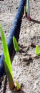 The gladiolas in the south-facing bed are 1-2 feet tall while those in the main bed, that only gets morning sun, are just starting to sprout as of 5 March.