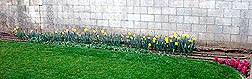 The Daffodils have wilted but the red and yellow Appledorn and Parade tulips a flowering with a vengeance. The Pink Impression tulips wilted on 22 March. The muscari are almosr gone for the year. This picture is a weak rendering of the brilliance these flowers show in full sun.