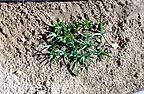 This is a sprout from one of the bulblets I missed. It's only a quarter of an inch across and two inches high. There are two dozen of these sprouts scattered throughout the bed. I'll let a few of them mature far enough to see it they flower, then pull them out. The question that's got me wondering is: If a gladiola bulb is left in the ground over the winter and it forms a dozen bulblets, won't their sprouting the next Spring crowd the original bulb so much it might not be able to flower?