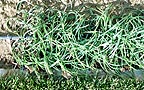 This picture is 18 inches top to bottom and the individual muscari leaves are over 12 inches long. In contrast, below is what second muscari bed looks like. It was planted just two weeks later than the one above. The photos are at the same scale. The difference is that the one below was planted after a Fall heat wave swept through the area and didn't get the idea that summer was just around the corner. It's amazing the difference a couple of weeks can make.