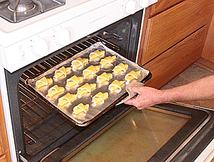 ... and bake for 20 minutes. It takes 20 minutes to make the second sheet of butterhorns, which is nice since they will be ready to slide into the oven when the first sheet comes out.