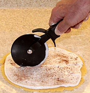 10. Use a pizza cutter to divide the dough into eight triangles.