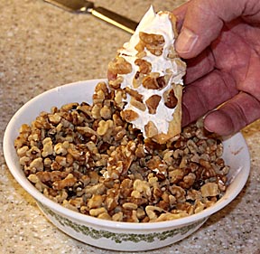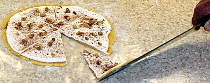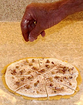 11. Sprinkle four or five small pieces of walnuts evenly over each section.