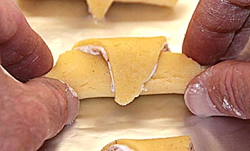 17. Slide the knife under the finished crescent and transfer it to the cookie sheet. Congratulations! One done! (Only 31 more to go.)