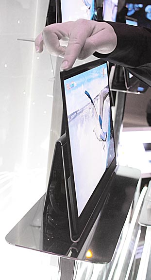 The biggest story was the push for home 3-D viewing capability. Every major brand had displays showing off their capabilities in this arena. All used glasses that looked like very weak sunglasses to merge what appears to the unaided eye to be three or four closely spaced multiple images. With the glasses these images merge into a single 3-D image with full depth of effect... sort of. I have to admit that while the technology was interesting, the final effect was not satisfying. The 3-D image looks a lot like the old viewmaster images, where there are two overlapping plains of objects that create a three dimensional effect. In the new TVs there appears to be four layers. The biggest problem is that when viewed with the glasses each layer is clearly defined and flat so that people a objects looks like paper cutouts. figures didn't look rounded like they are in real life. Watching for more than a few minutes gave me a headache. Another problem was that each layer was in sharp focus, I suppose in an effort to emphasize the 3-D effect. In real life we focus on one object and others closer or further away are out of focus. The 3-D sets didn't do this and in so doing created an artificial, posterized look.