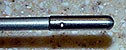 The business end of the shaft (shown here full-size) is chrome steel, waterproof, and designed to be pushed into hard ground. (The pinpointer's body is not waterproof.)