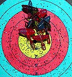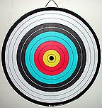 to a ten-ring, gold, red, blue, black, and white target. I was