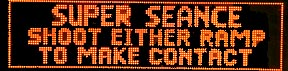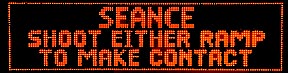 The goal in the Seance round it to make contact with the "other side" by sending a ball up either the Bear Kick or Left Ramps. "Contact" is acknowledged by a loud knock and an award of $5M, $10M and $15M.