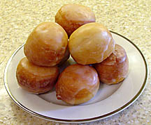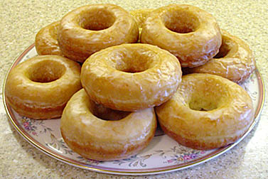 I can't remember what insane impulse drove me to try making raised doughnuts at home. After all, they're so inexpensive you have to wonder why anyone would bother. Yet attempt making them I did... and failed miserably. They were greasy, chewy lumps that I wouldn't feed to a dog. Frustration fired determination and before I knew it I'd spent two weeks frying doughnuts almost every day, gone through 20 pounds of flour and put on almost as much weight from tasting them. But, perseverance paid off and by the time all was said and done I managed to figure out how to make a doughnut that was as good as what's available in doughnut shops. This page presents my technique so that anyone finding it might be saved some of the frustration with which I had to deal.