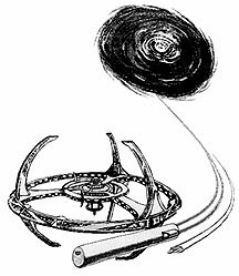 The screen shimmered. A hint of curvature bowed the wall towards them. Terl tapped the control a third time. "Magnification fifty." A second shimmer tightened the curvature and brought a cylindrical termination to the wall near the screen's lower-right corner.